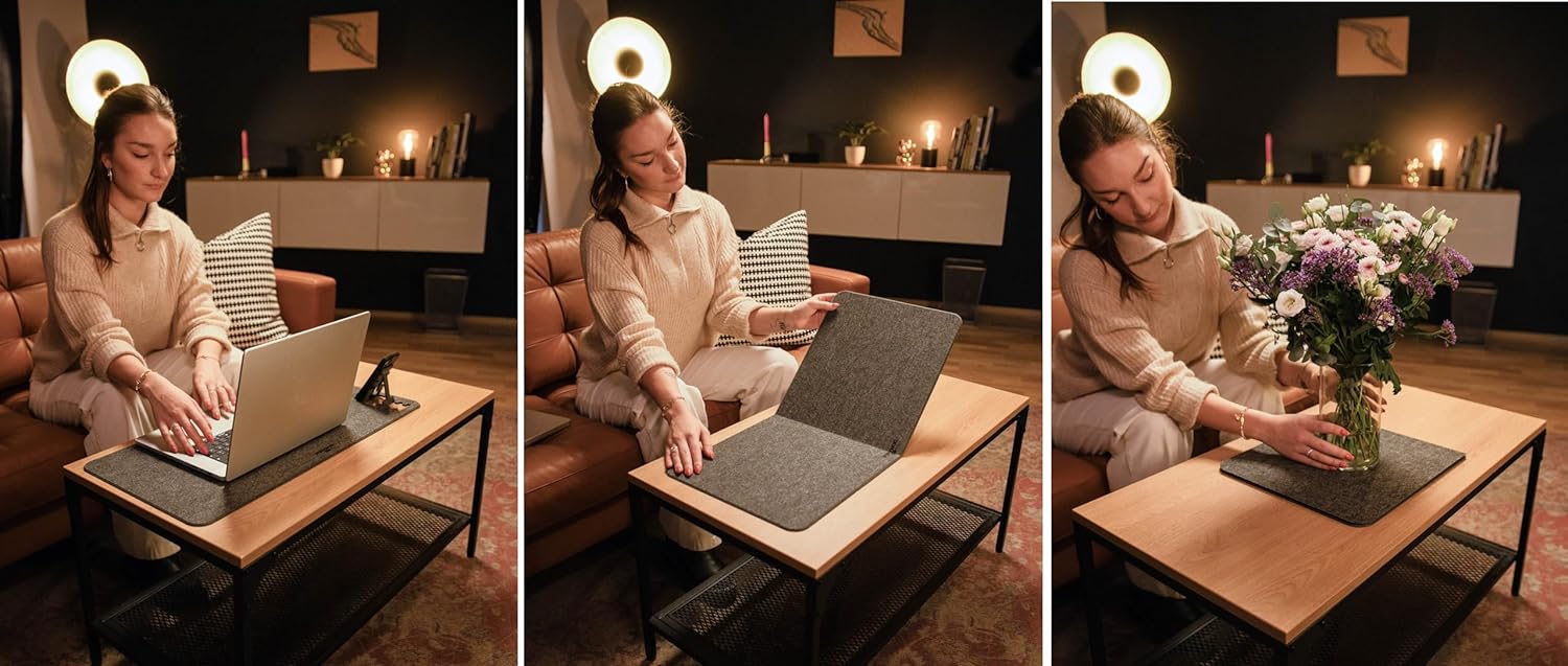 • Platzsparende Eleganz: die Schreibunterlage lässt sich auf die Hälfte zusammenklappen und ist somit ein perfekter Begleiter im Homeoffice